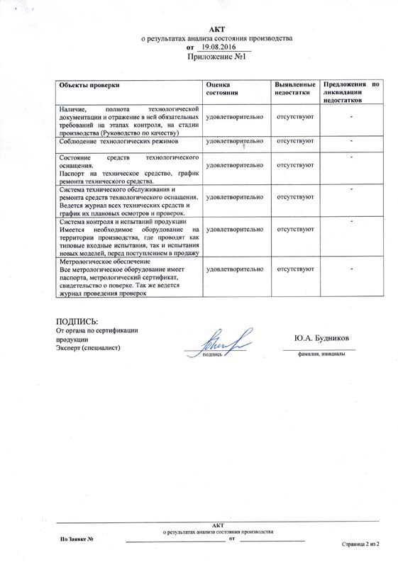 Акт о результатах анализа состояния производства